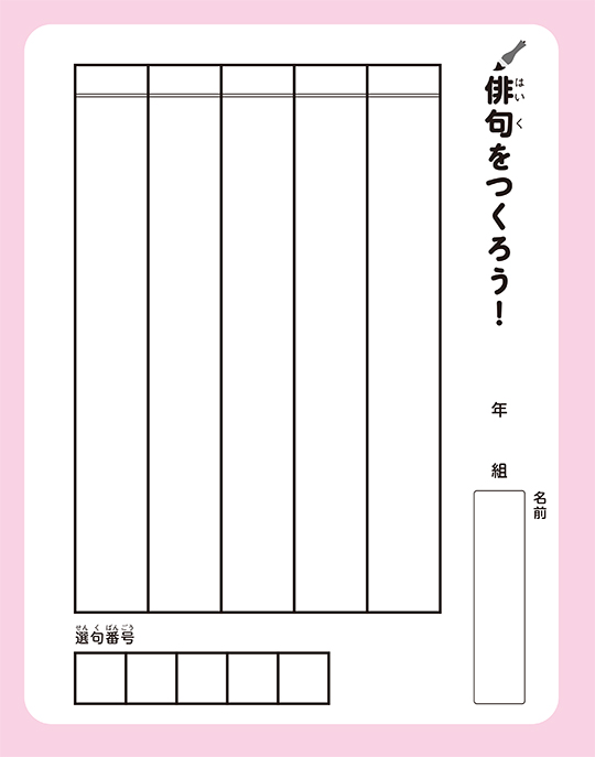 - 小峰書店刊行の「季節のことばをあじわう はじめての俳句歳時記」シリーズを用いた、選句もできる作句用紙をダウンロードいただけます。