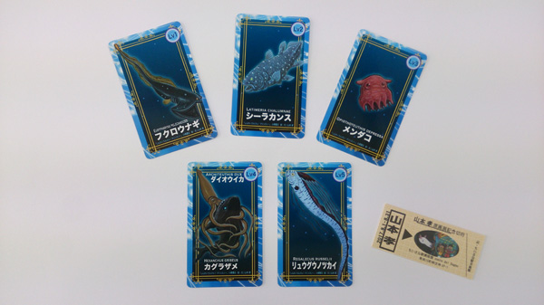 原画展会場で深海クイズに答えると、深海魚カード(5種類・無料)がもらえます!